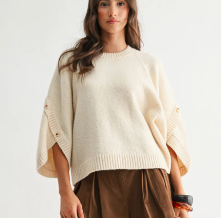 Button Sleeve Knit Pullover