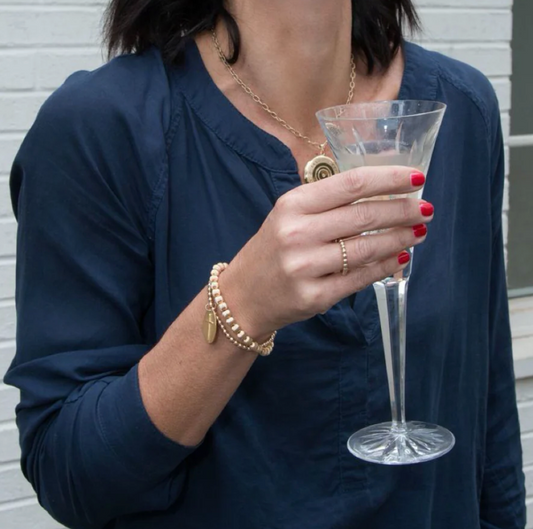 SIGNATURE CROSS PEARL 4MM BEAD BRACELET - GOLD