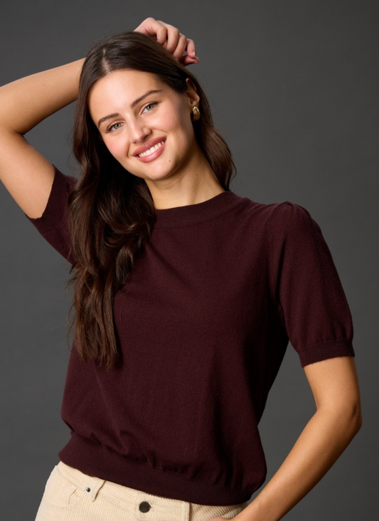 Sold outKnit Short Sleeve Puff Sleeve Top