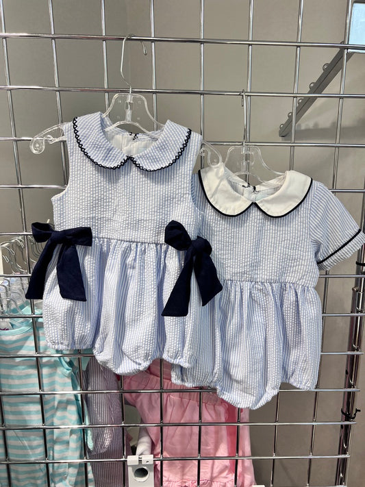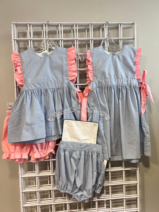 Pink & Blue Floral and Lace Bow Ruffle Romper