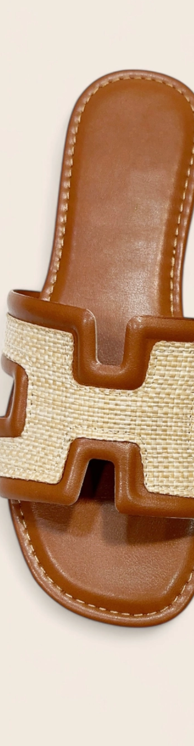 Brown Woven Upper Slide Sandal