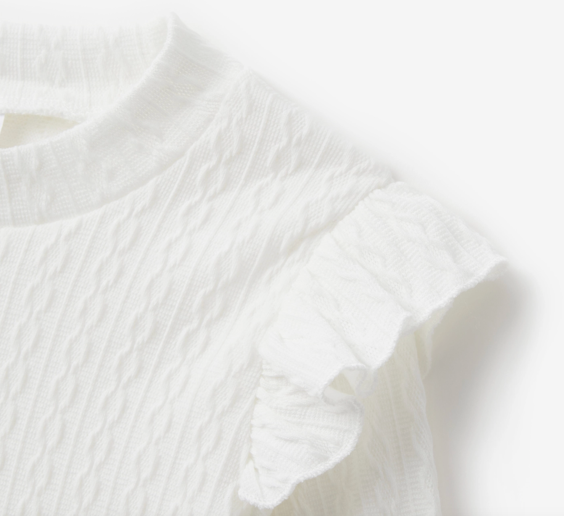 * Ruffled & Textured Top, Button Design & Belted Bottom