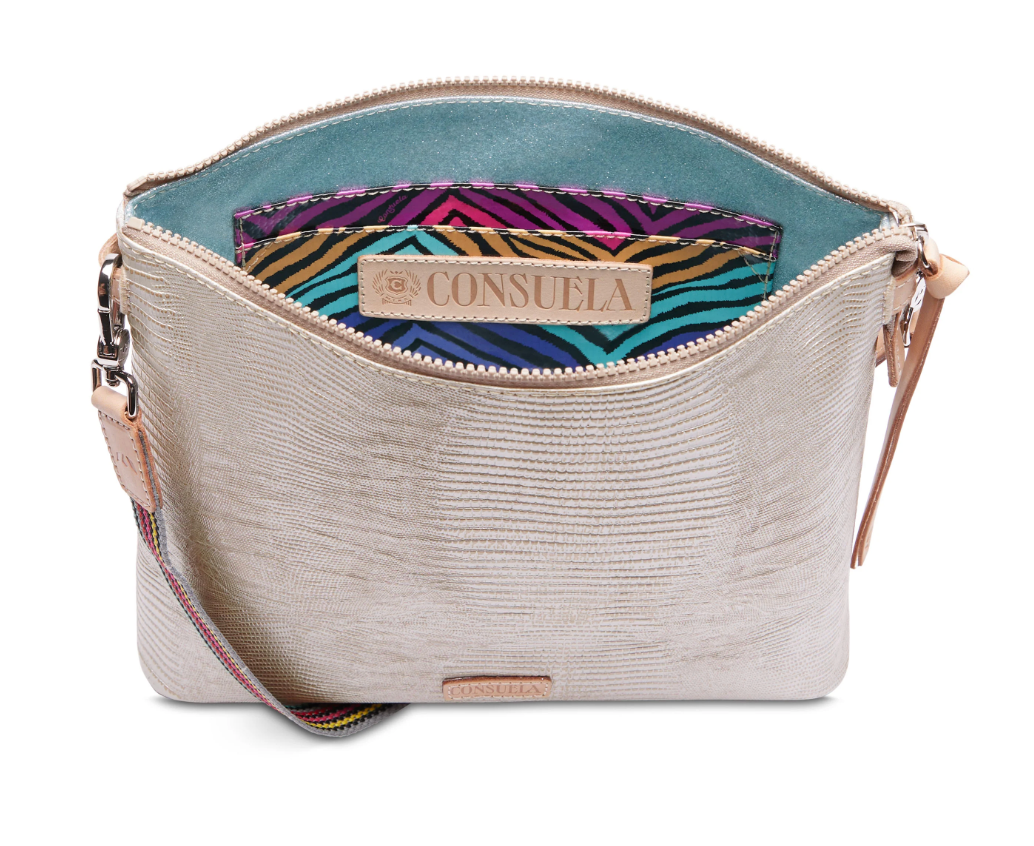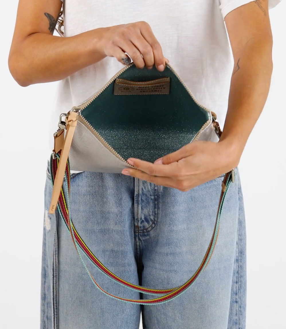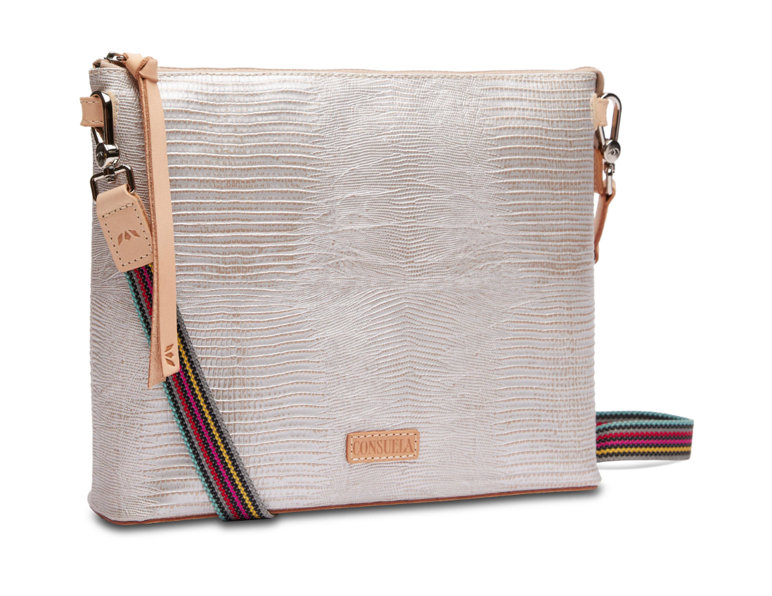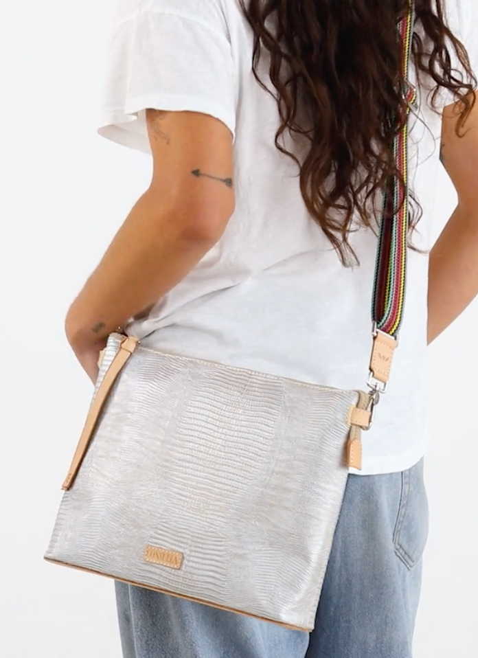 This embroidered crossbody bag is ready to take on the day with an adjustable strap and two interior pockets. Crafted with a roomy open interior, the Downtown Crossbody can carry the essentials and more.