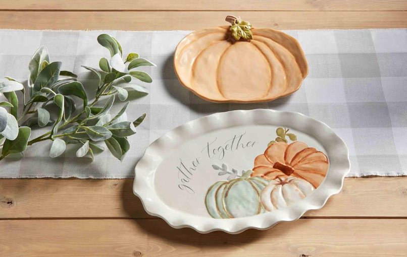 Set of two ceramic nesting platters. Individual wholesale price is small, _; large, _.