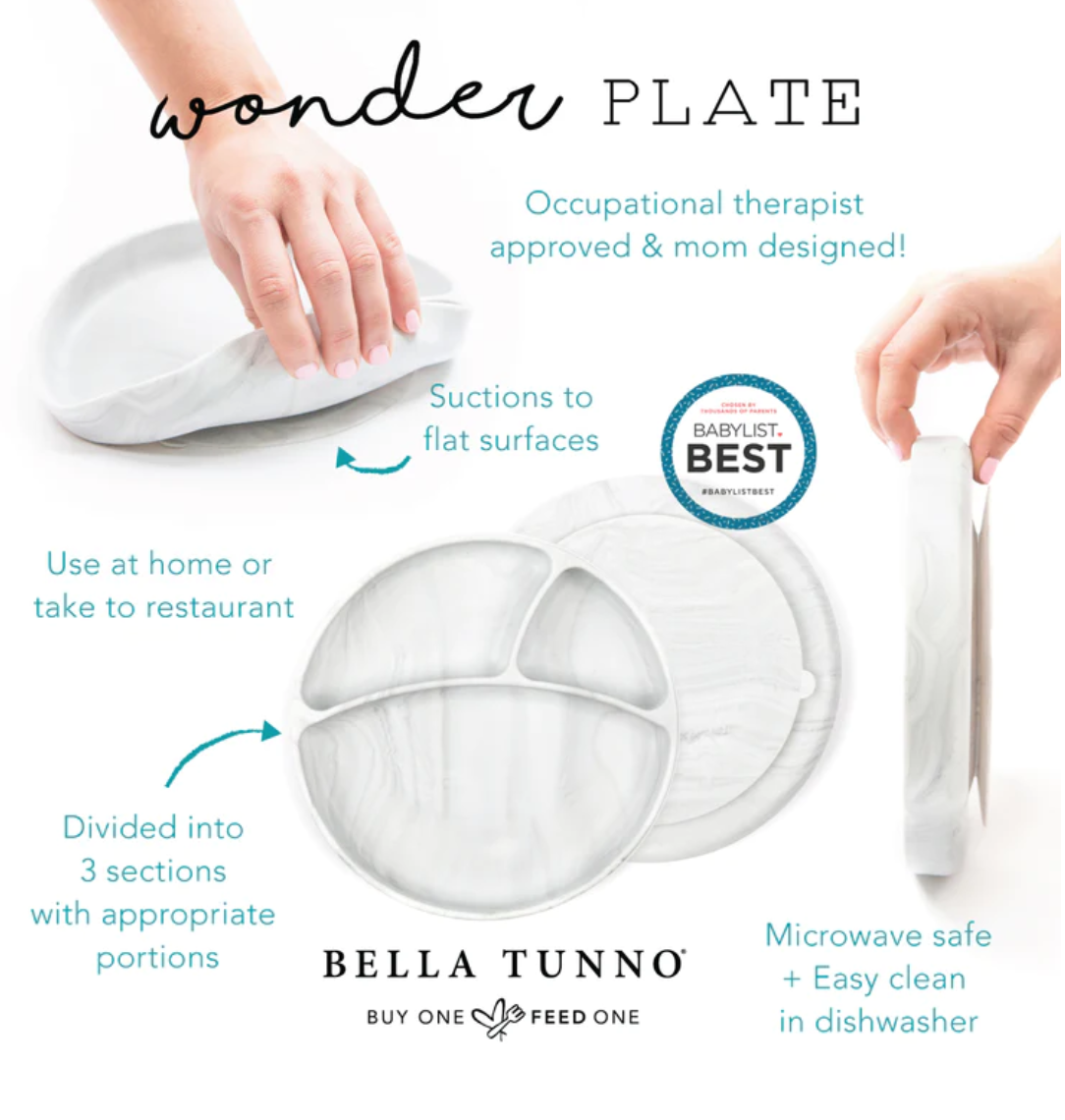 No more flying saucers at dinner. The suction on our Wonder Plate is unrivaled. Divided into 3 sections for well balanced meals, this silicone suction plate promotes good eating habits and appropriate portions. Safe in both the microwave and dishwasher, this little plate is a true tabletop hero. We’d love to say we designed this all on our own, but we called in the mom experts to make sure our plate was size, suction and fun approved. Check, check, check!
