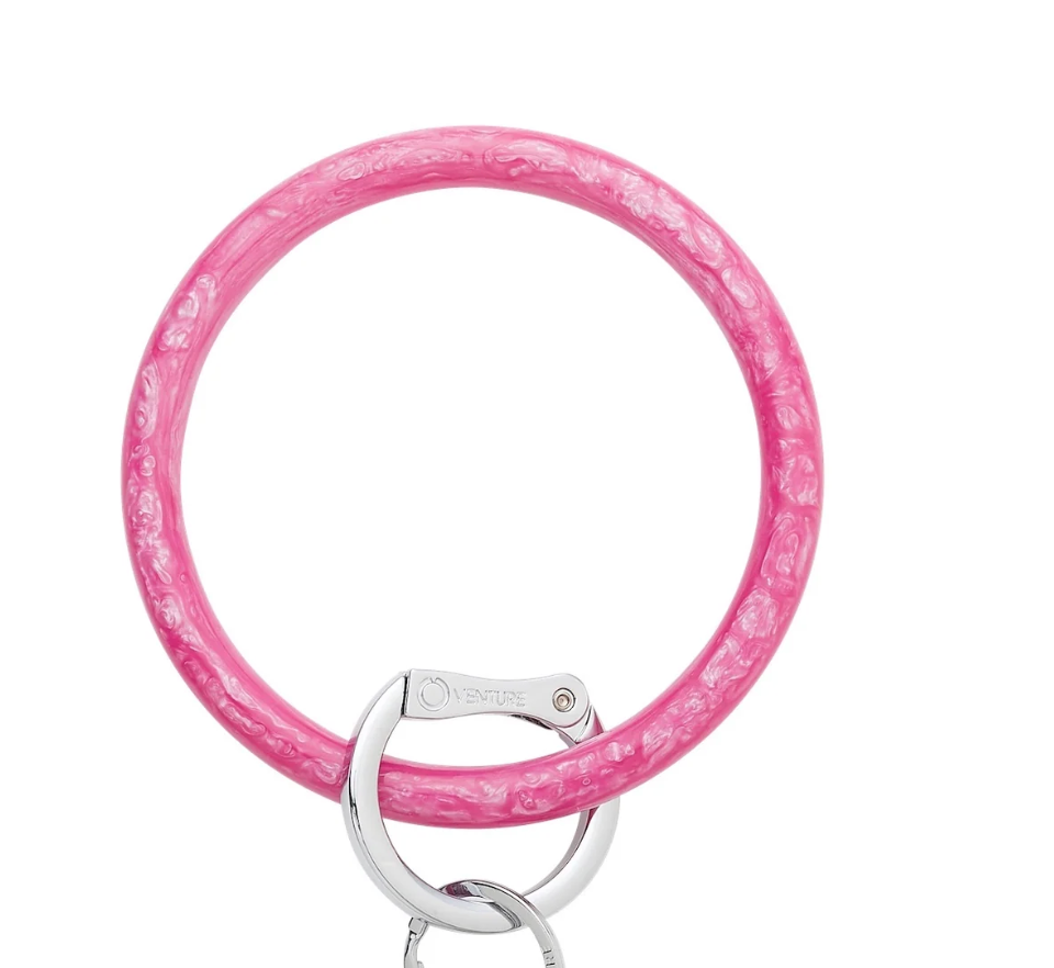 Inspired by our favorite stackable bangles,The Original Big O® Key Ring is a one-size-fits-all bracelet key ring that can be worn on your forearm or above your elbow for hands-free simplicity. The patented, signature locking clasp clicks open and closed so you can keep your keys, phone and wallet in one central, secure location.