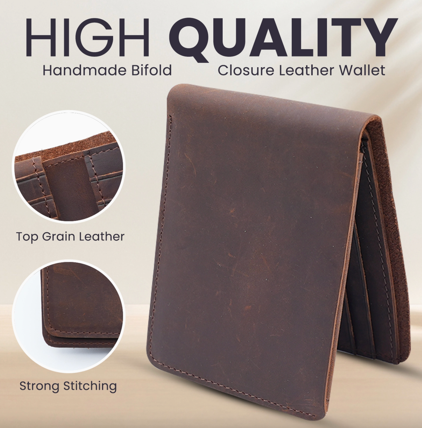 Leather Wallet for Men, Top Grain Leather Mens Bifold Wallets, With Flap Out ID WIndow Holder, Handcrafted, Strong Stitching, Extra Capacity for bills, 14 Card Slots