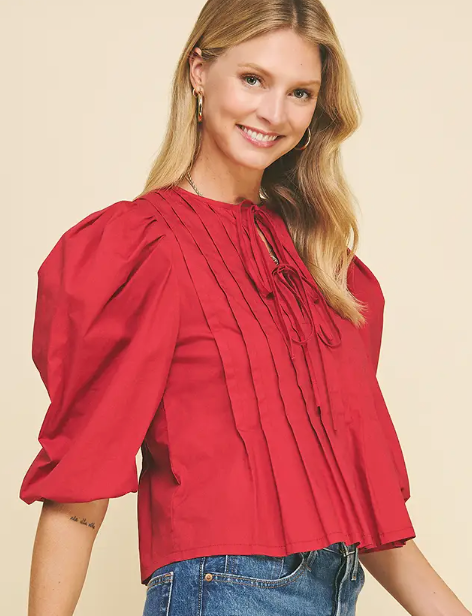 PUFFED SHORT SLEEVE TUCKED DETAIL