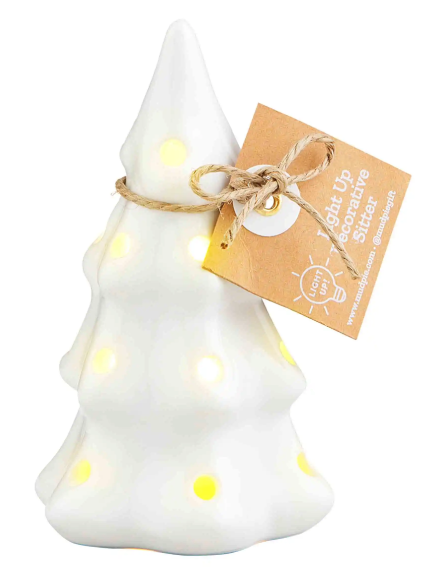 Get into the holiday spirit with our Tree Light Up Sitter, adding a festive touch to your home decor. This meticulously hand-painted ceramic tree sitter comes with an LED light-up interior, creating a charming glow. The sitter includes batteries, so you can enjoy the magical ambiance right out of the box. Measuring at 2 3/4" x 4 1/2", this timeless piece is a must-have for Christmas enthusiasts. To keep it looking pristine, simply spot clean with a dry cloth. Please note that this product contains a button battery, which can be hazardous if swallowed.