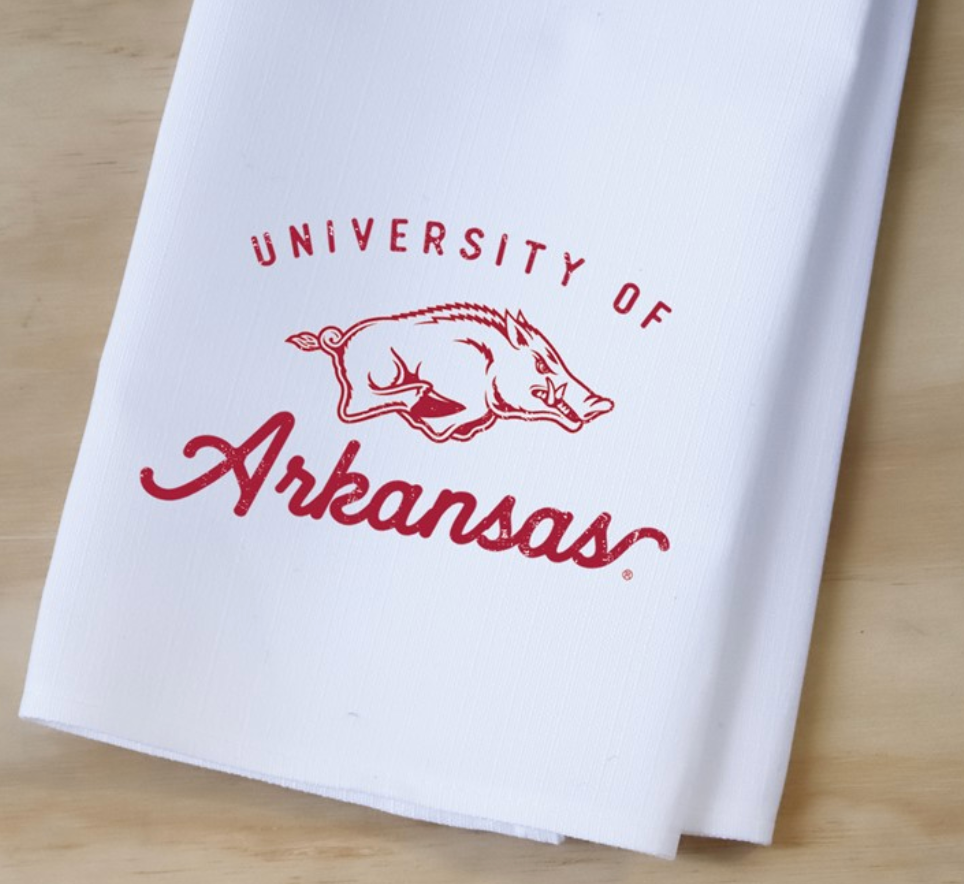 Show your school spirit with our CLC Licensed Collegiate Collection! Designed and manufactured in Calhoun City, Mississippi, add Little Birdie tea towels to your kitchen or guest bath for a fun and personalized touch! Towel measures 24" x 14", imprint area is approximately 8" x 8". Our designs are dyed directly into the fabric, so they won't peel or crack. Machine washable, (Warm, Tumble Dry- Low). Fabric is 100% Polyester.