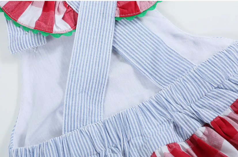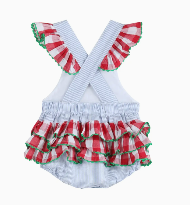 Light Blue Seersucker and Gingham Watermelon Ruffle